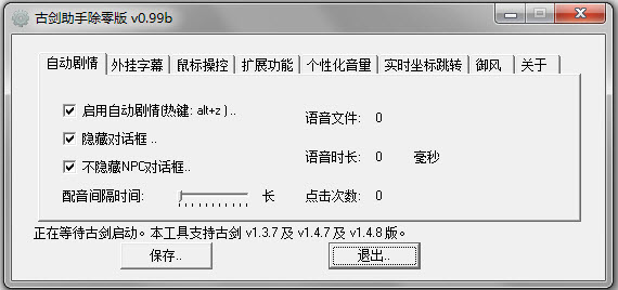 v0.72 添加隐藏对话框功能,暂时需要先运行古剑,并进入游戏之后,再运行本工具才有效
