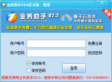 业务助手企业搜索软件是一款专业针对企业开拓市场和业务员资料查询的云软件。拥有业务助手即刻拥有3000万客户联系方式,公司名称,姓名,称呼,职务,电话,移动电话,传真,地址,邮编,法定代表人或负责人,电子邮件,公司主页,公司介绍,主营产品或服务,主营业,企业类型,经营模式,注册资本,公司注册地,员工人数,成立时间,主要客户,主要经营地点。业务助手是是企业开拓市场和业务员做业务的必备利器。