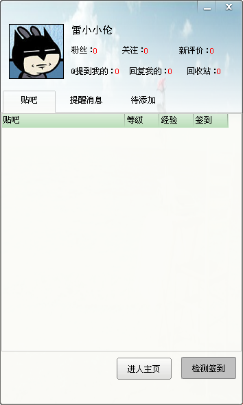 2、登录后,可以看到主界面窗口,目前功能还不完善,提供签到检测和提醒功能