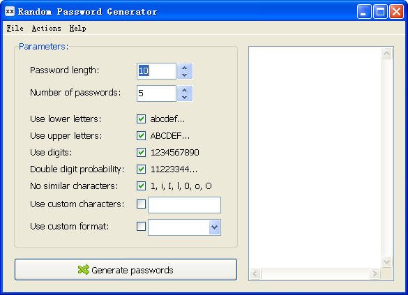 RandPass是一款方便易用的随机密码生成软件。该软件可以根据指定的字符来进行随机生成密码,支持自定义输出格式设置,让你的密码安全性得到最大保障。
