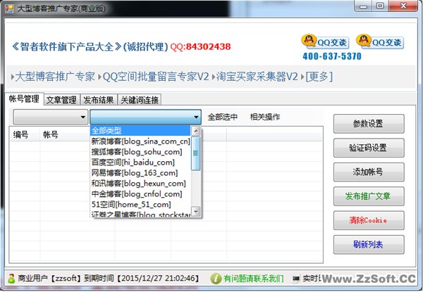 大型博客推广专家是智者软件出品的大型博客推广软件,支持数十种大型博客/SNS/轻博客的文章群建、群发!支持自定义插入关键词连接(优化网站关键词、长尾关键词)。是网站外链优化、排名优化、产品宝贝推广的必备利器!