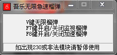 吾乐乐无限急速榴弹最新版发布了,支持cf穿越火线1.9.5游戏客户端,支持巨人城、雷霆塔、末日剧场、救世主等地图。随着官方打击无限榴弹的力度加大,现在很多的无限榴弹辅助已经不能用了,但是急速榴弹还是可以使用,有总比没有强,欢迎大家下载。