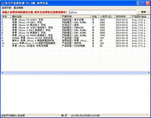电子产品报价器 v1.0 绿色免费版 电子产品的水很深,不懂行的人真的容易被JS骗。但是现在互联网很发达,网上什么信息都有,报价网站很多,但是找起来很麻烦。电子产品报价器就是解决这个问题。