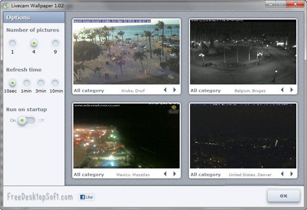 全世界摄像头壁纸(Livecam Wallpaper)展示真实世界的世界实时图像,通过遍布全球各大洲的网络摄像头来摄取。 它会定期下载最新的影像,将它保存到你的硬盘上设置为当前壁纸。