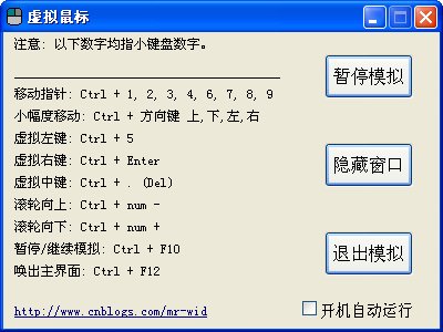 除以上图中对鼠标操作模拟的组合键外, 程序还支持使用热键对模拟的暂停与继续: