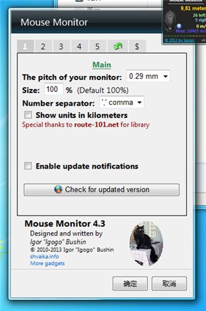 mouse moniter是一个有趣的桌面小工具,它可以帮你查看鼠标的动态,包括鼠标在桌面上行走的路程、左右键点击次数、当前移动速度以及最高移动速度。