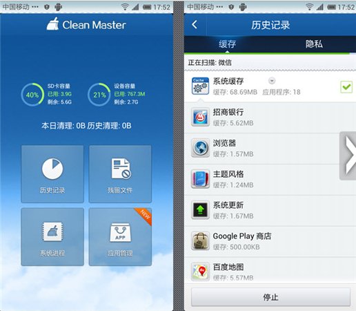 金山清理大师(Clean Master)v4.2.01.集成全球第一杀毒引擎,时刻保护您的手机安全;