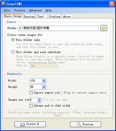 Snap2IMG 可以为指定文件夹下的所有图片按照设定的格式生成一张含有全部图片的缩略预览图,类似矩阵缩略图,这极大方便了为大量图片制作预览图的工作,在同一个版面上排列多张图片,也便于打印输出。
