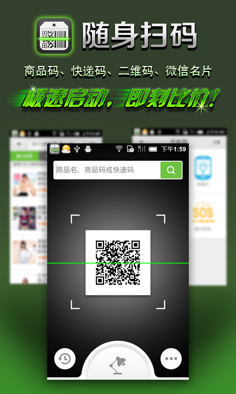 全国海选各路超市优惠促销,快速比价,童叟无欺,让你的生活更精明!快递追踪,一扫知晓;微博、微信二维名片,一扫关注,无缝链接,再也不用找软件、找功能、找适合的扫码工具,只需随身扫码手电筒,一维、二维、三围……所有码统统搞定