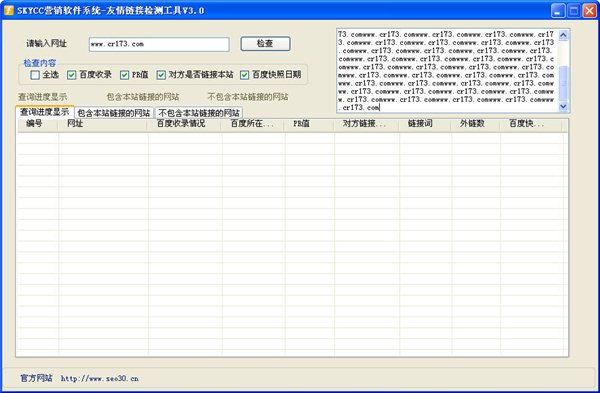 友情链接检测工具,本工具可以批量查询友情链接在百度的收录情况. 功能:快速获知哪些友情链接在百度收录数量为0,同时能查询友情链接的PR、以及对方是否有链接本站,即时了解哪些友情链接私自撤下链接。