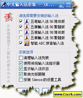 5、“清理输入法”选项,将删除本套装以外的输入法,如无需要请勿选择。