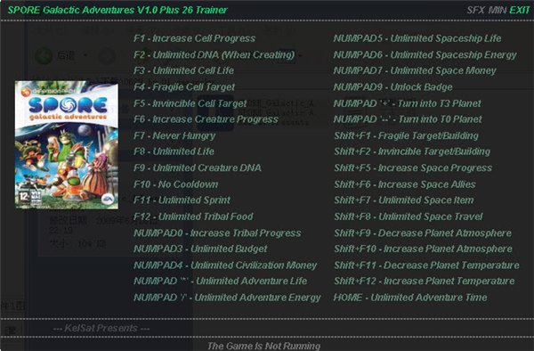 孢子二十六项属性修改器,一款同名游戏的作弊器,一共二十六个选项,让你轻松通关不再是梦想。