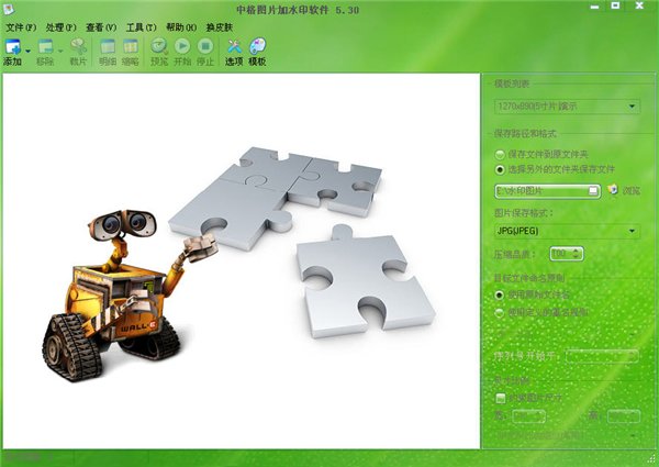 中格图片加水印软件 5.30 绿色版 中格图片加水印软件是一款绿色免安装的图片批量添加水印的软件。