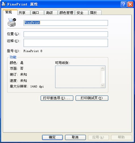 多个 FinePrint 打印机: 能创建多个 FinePrint 打印机。允许创建多个不同配置的“虚拟打印机”例如,你可以有一个自动打印小册子的“小册子打印机”或者“信笺抬头打印机”不出现 FinePrint对话框,直接打印你的信笺抬头。