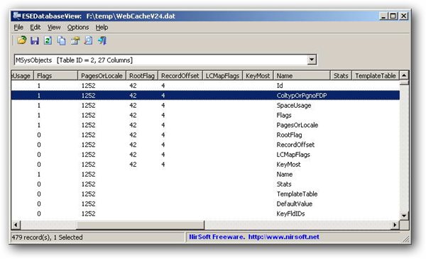 ESEDatabaseView它显示一个打开的数据库文件中的所有可用的表的列表,允许你选择查看所需的表,然后当你选择一个表,它显示在选定的表中找到的所有记录。esedatabaseview还允许您轻松地选择一个或多个记录,然后导出为逗号分隔或制表符分隔的\ / HTML / XML文件,或复制到剪贴板的记录(按Ctrl + C),然后粘贴到Excel或其他电子表格应用。