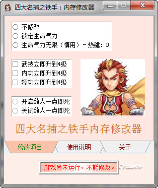 四大名捕之铁手内存修改器是同款游戏的修改器,可以帮助玩家更好的体验游戏。