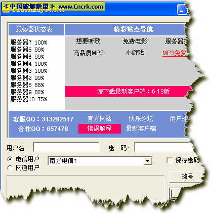 例如:未使用快乐行的电信用户,在使用网通资源如电影、游戏、网页、上传、下载……时,速度都会非常慢。但使用了该软件后,您的访问速度立刻明显流畅起来,让您深刻体验到互联互通之间的飞速冲浪感觉。已经打好官方补丁!(修正无法保存密码)