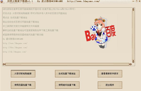 百度云批量下载器 V1.1绿色免费版 百度云批量下载器可批量解析百度云网盘的直接下载地址,同时支持文件链接及文件夹链接,支持迅雷和QQ旋风批量下载。