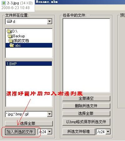 找到你保存的BMP文件,然后调整好像素后加入右边列表