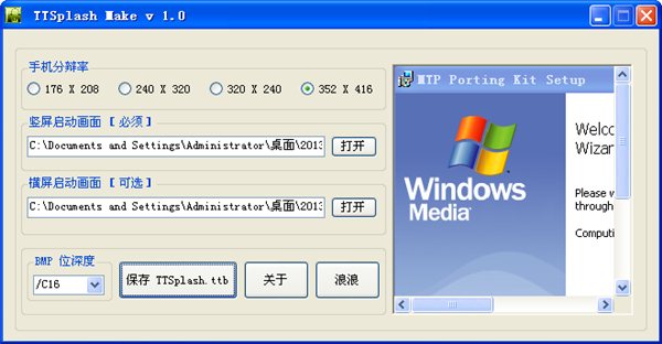 1、选择竖屏启动画面和横屏启动画面,竖屏是必须的(格式为BMP图片),先使用ACDSee编辑图片并转换图片格式为bmp再用mbmwhizard将bmp文件转换为mbm格式(注意转换时选c24)最后用。