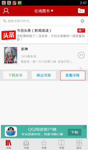 1、打开“手机快读免费小说”,如图1所示