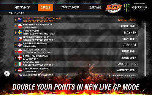 双击您的积分,现场赛道GP比赛期间播放。