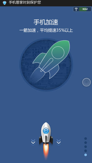 腾讯手机管家首创了小火箭加速手机,让用户参与到手机加速的互动中来,手机管家用户对此功能赞不绝口,甚至很多人都成了“火箭控”,有事没事会发射一下火箭。手机管家先锋版在原有小火箭加速基础上再次优化,一键加速平均提速35%,同时加速界面动画设计更美观。