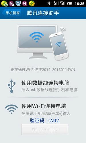 在手机上安装腾讯连接助手,可以轻松通过无线网络(wifi)
