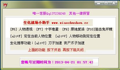生化战场小助手是网上最完美的一款生化战场辅助工具,功能非常强大,真正实现与游戏内核无缝对接,绝对不会被游戏商发现。而且这是免费的。