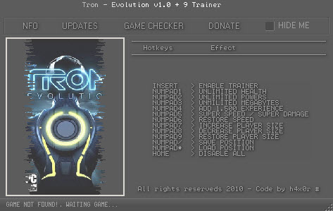 特隆:进化九项修改器,是一款为游戏特隆:进化制作的多功能游戏作弊器,一共有九个功能选项,玩家可根据自己的水平自行选择,操作简单,功能强大,是您通关杀敌的好帮手。