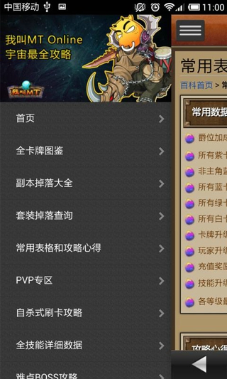 我叫MT宇宙最全攻略是当下最火爆的手机网游《我叫MT》最详尽图鉴攻略收录大全。详实准确的卡牌图鉴,详细的全技能数据,常用的数据表格,自杀式卡牌刷法推荐,玩家总结的攻略心得,难点BOSS的打法推荐以及新版本竞技场的内容。让您一手掌握游戏最权威最准确最实用的攻略资讯。本应用经我叫MT中文wiki资料站(mt.joyme.com)授权使用其全部内容。及时更新最准确最详实的卡牌图鉴,最全面的玩家攻略心得。