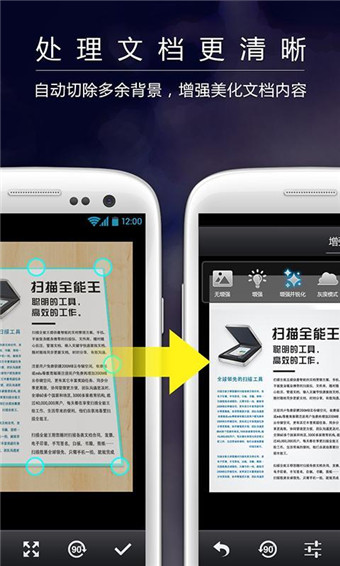 扫描全能王安卓版将手机变成便携随身扫描器,方便快捷地记录管理您的各种文档,收据,笔记和白板讨论等.并通过智慧精准的图像裁剪和图像增强演算法,保证您扫描的内容清晰可读。【扫描全能王软件特色】