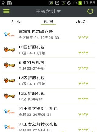 5.汇聚多家网站的网游信息,包括91(18183)、九游、当乐、腾讯等等,优惠信息全面掌握。