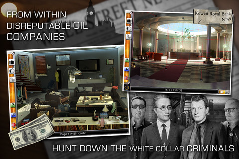 《犯罪调查组:石油美元》是一款解谜游戏,您扮演一位女探长吉根,追捕那些自以为可以凌驾于法律上的罪犯。偷税漏税、利益冲突直至侦探被谋杀,案子一件接一件。训练有素的调查员们在第一线追捕那些白领罪犯。简称“F.T.B.”的着名的政府机构“联邦税务局”中,有一个部门专门调查最严重的税务犯罪行为,简称“犯罪调查组”。您化身为“联邦税务局”专员弗朗西斯?吉根,这位女主人公负责追捕那些衣冠楚楚的税务犯罪分子,她熟知金融、深谙间谍手法,具备第一线调查的能力。弗朗西斯对石油工业界十分关注,自从她的朋友兼同事埃里克?沃德被杀后,她就紧盯着克劳斯?弗莱德里克斯。攻击面扩大了,“联邦税务局”尽一切力量抓捕那个自认为凌驾于法律上的人。【游戏特色】