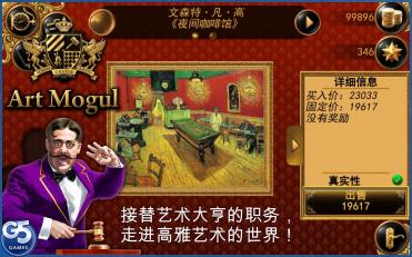 在游戏艺术大亨 Art Mogul 中,你将变成一位艺术大亨,通过激动人心的拍卖会,完成利润丰厚的请求,揭示赝品,以及更多!旅行于不同的城市之间,追踪梵高,莫奈,克林姆,提香,伦勃朗等艺术家的作品下落!开设你自己的艺术画廊,赚取财富和名望!【游戏特色】