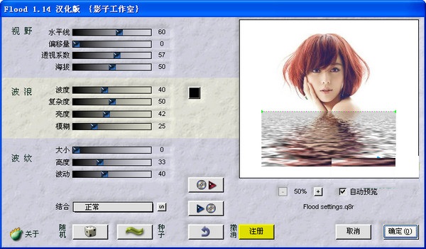 Flood倒影滤镜可以做出令人叫绝的倒影效果,个人认为是 Flaming Pear 公司众多滤镜产品中最值得使用的插件。绝对经典,强烈推荐适用于所有支持PhotoShop插件规范的图像软件。