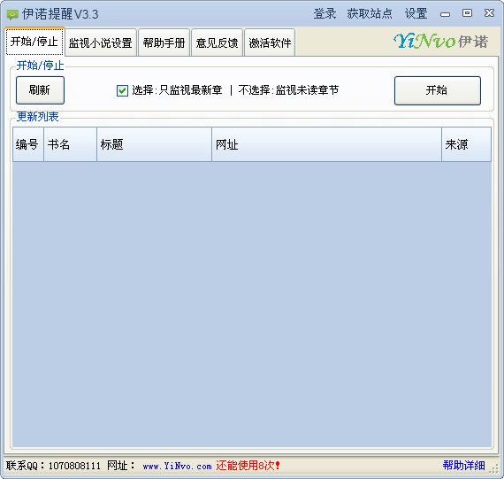 伊诺提醒 v3.3 官方版 伊诺提醒是伊诺小说旗下一款专业的小说更新提醒软件。即时通知起点小说更新。操作简单,方便易用,全面支持 Windows XP/win7/win8系统。