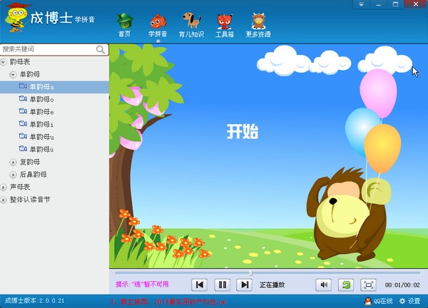 成博士学拼音 v2.0.0.21 绿色版 成博士学拼音主要面向幼儿园大班及小学一、二年级的小朋友,提前学习拼音,为一年级的学习打下基础。幼儿园大班需提前学拼音的小朋友 小学一、二年级拼音学的不好的学生。