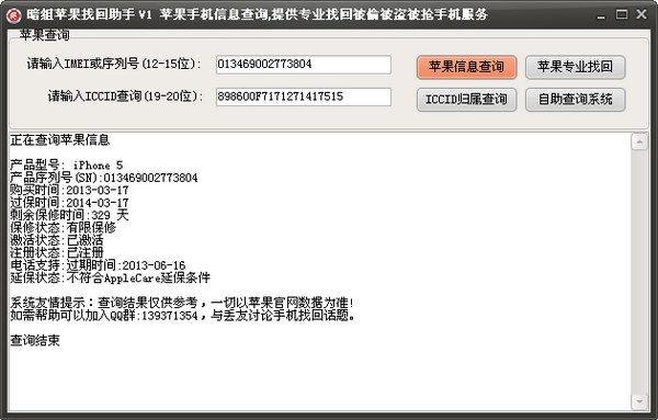 暗组苹果找回助手一款专门为Iphone手机丢友打造的软件,快速查询手机的保修情况,维修换机和iccid的归属地信息,第一时间掌握手机动态,及时查询,及时定位!Iphone找回成功率再提一层!
