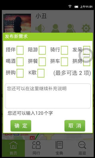 3、发布旅游行程召集同伴功能;