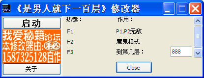 是男人就下一百层描述的是男人和他的女朋友下落到达底层的游戏,本修改器可以修改无敌,层数,魔鬼模式