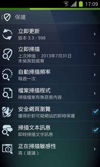 使用AVGMobileAntiVirusSecurityPRO,您可以: