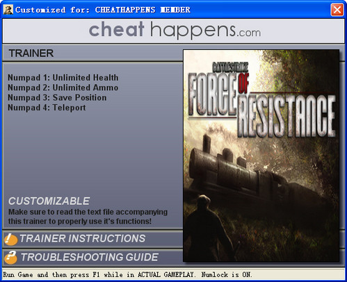 战争打击反抗力量修改器4项功能修改器,能帮您轻松的完成游戏。