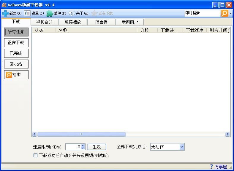 AcDown动漫下载器是一个免费、开源、专业的动漫资源下载器,界面简洁,使用方便,能够下载国内大部分在线视频网站和在线漫画网站的资源,包括Acfun、Bilibili、优酷、土豆、YouTube、爱漫画、吐槽网等等,内置了AcPlay弹幕播放器,可以自由匹配、播放来自各个弹幕网站的视频和弹幕。