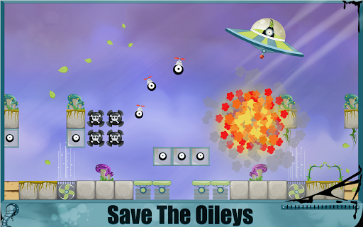 独眼队长是GameCooks又放出了一款新作,不过在看了开头画面之后,觉得“独眼”并不是主人公的最大亮点,而是它的构造,说白了它就是一粒黑色的油滴,而我们就是要利用它来解救更多的石油同伴。在游戏的画面上,GameCooks大胆采用了清新唯美的画风,以此强烈衬托出游戏的主角“石油兄”,在这两种极端配合下却丝毫没有让人觉得别扭,实在是佩服GameCooks的胆量。