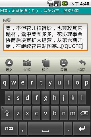 在列表页面(主题列表/帖子列表)按音量上下键,是能够在快速的在楼层中间跳的,长贴滚动定位有时候还没这个方便。有menu键的机器按menu键会临时隐藏下面的操作条的,再按一下恢复,小屏的机器能稍微多一点显示空间(新机器好像都没有menu键了)
