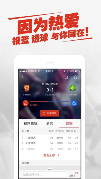 每项赛事除提供全部球队排行外,涵盖足篮球10余单项榜单,每场比赛提供全面数据统计,平均每个球员提供10余项数据统计。海量快速全面的新闻报道及深度评论;视频新闻涵盖集锦、录播、策划、进球等10余种类型,丰富多彩的视听享受。