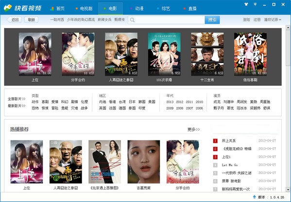 快看视频是一款集在线搜索,在线点播,快速下载,收藏视频等多种功能的视频播放器,快看视频拥有众多的视频资源、分别有电影、电视、热门综艺、娱乐新闻等等,有了这个网络视频播放器,您就拥有了一个超级强大的网络电视,在家就可以享受影音视听盛宴。