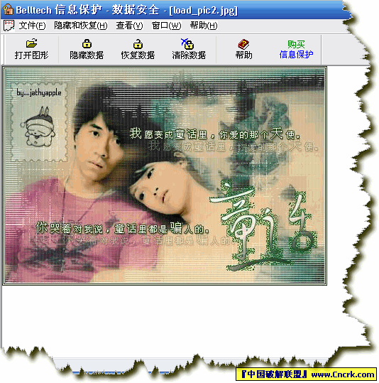 Belltech InfoProtect Data Security(文件加密) V1.3 绿色汉化版 Belltech InfoProtect Data Security 是一款文件加密工具。它能够将文件加密藏入图片文件中,而且这个图象文件能够被图象浏览器正常的浏览。这些隐藏的数据也能够用您的密码进行加密,加密任何文件包括.exe文件。支持JPEG、GIF和BMP 图象格式。