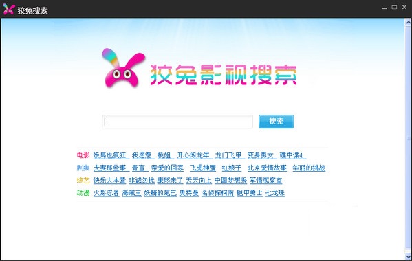 狡兔搜索 v1.0 绿色版 狡兔视频搜索服务是基于互联网真正百万部的海量内容,拥有高效智能的搜索技术,方便快捷的产品功能。让您想搜就搜,想看就看,居家必备之网络利器。